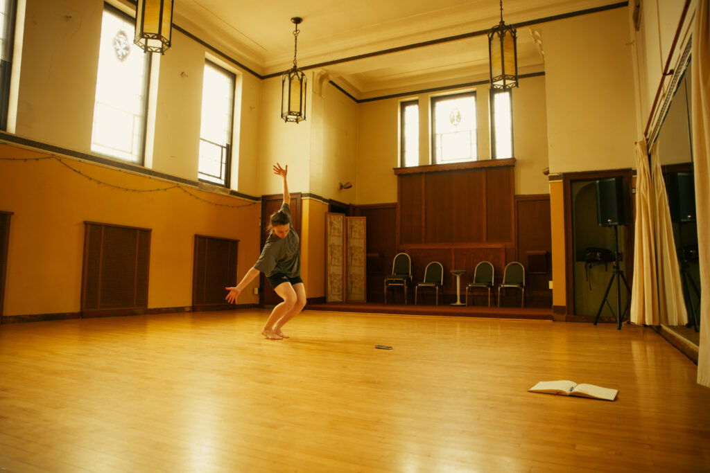 It was the second day of rehearsal for Mosser’s upcoming project, Converge. Mosser took out her nude knee pads, notebook and pencil, a water bottle and a book titled “The Light Eaters: How the Unseen World of Plant Intelligence Offers a New Understanding of Life on Earth,” by Zoë Schlanger.