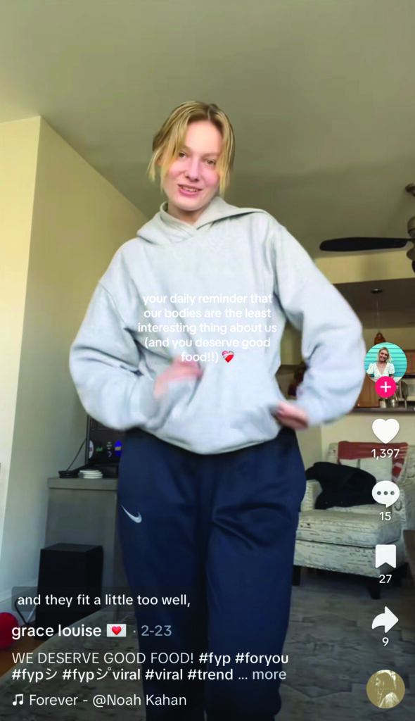 “The reason I started making content was to normalize a ‘normal’ body,” said Grace Louise, a social media influencer known for advocating body positivity and self-love. “All I ever saw was thin women, and they were celebrated, whereas curvier women would get scrutinized. My philosophy is that every body is a perfect body. No ifs, ands, or buts.”