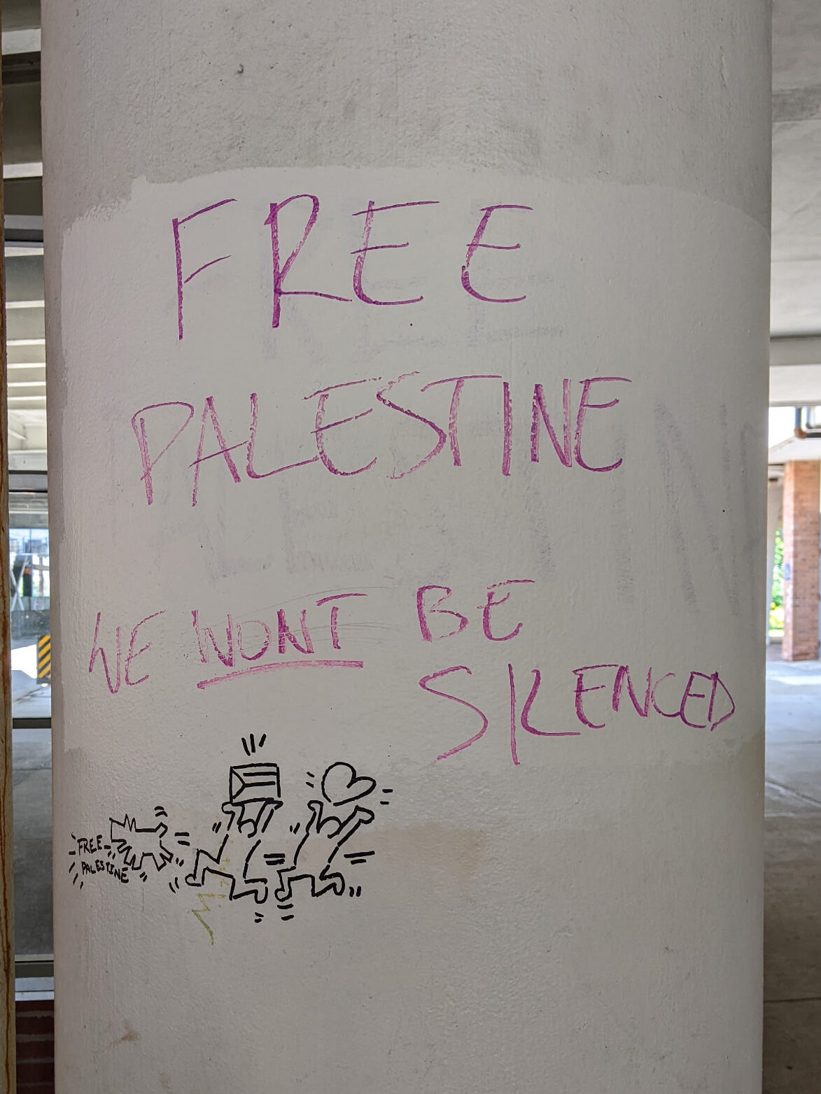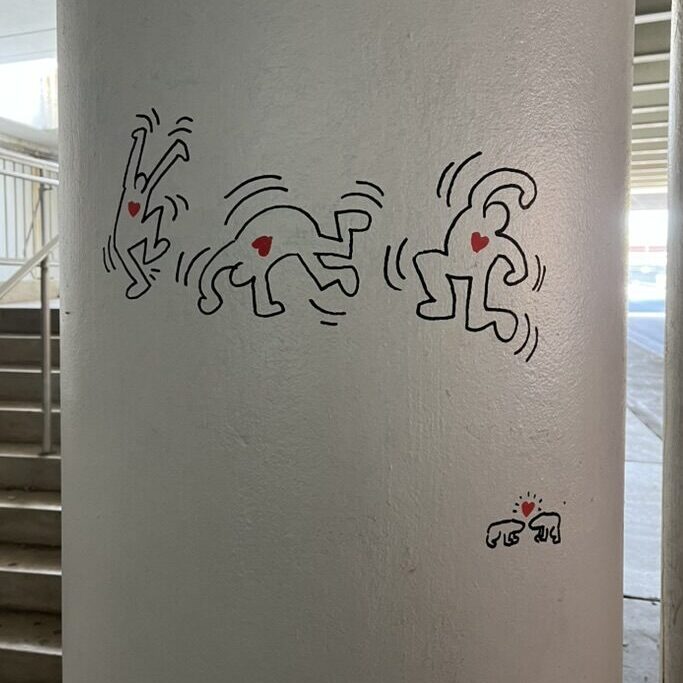 Perhaps unsurprisingly, the Haring tags around campus that seem to be removed the quickest are those with overt political messages. The “Free Palestine” figures that I first saw were painted over within a week.